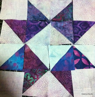 This quilt will have stars of different colours in bands of bright batik sashing. I just cant decide which center I like, I think I am going for the middle one. The top one is nice but looks like ears of a star. The bottom one I think is just to fussy. I liked the idea originally of the different colour for the center but when I see it I think in the whole quilt it will look messy. So middle it is. Off to sew more while I watch some Boston Legal.