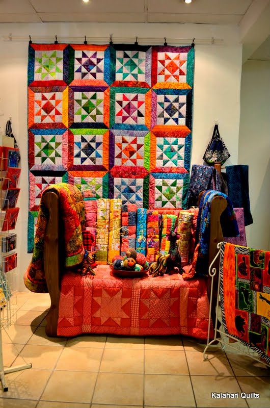Our new range of T-shirts with some of our quilts on them. Coffee mugs (good big ones) with our new phrase "No Matatta Sew Easy. Kalahari Quilts (No Matatta means no problem :))